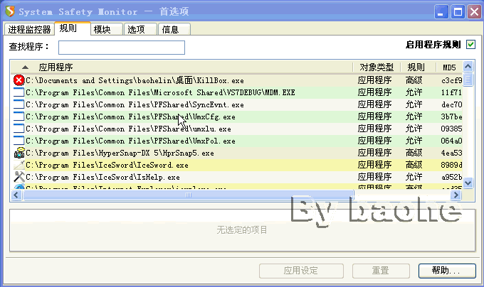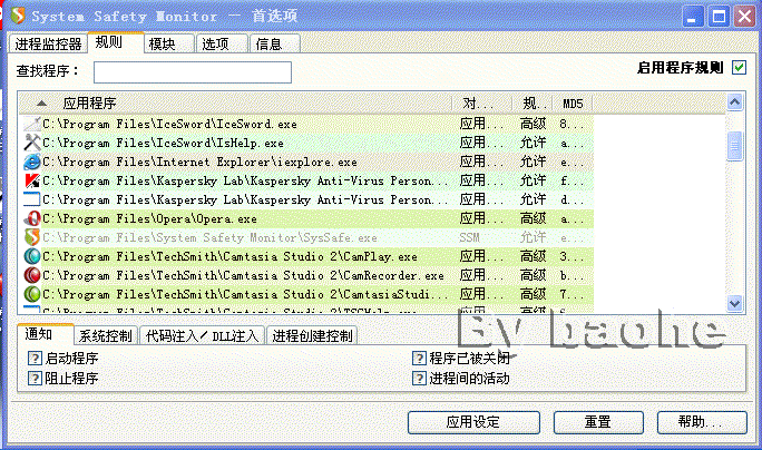 9、在SSM注册表监控模块中添加“文件关联保护”。SSM的默认设置中没有这些保护(Qoo以前提到过这个问题),用户可以仿照下面图中的操作自己添加这些内容。另外,常被某些木马利用的一些注册表键(如:ShellExcuteHook键)也可以这样的办法保护起来。