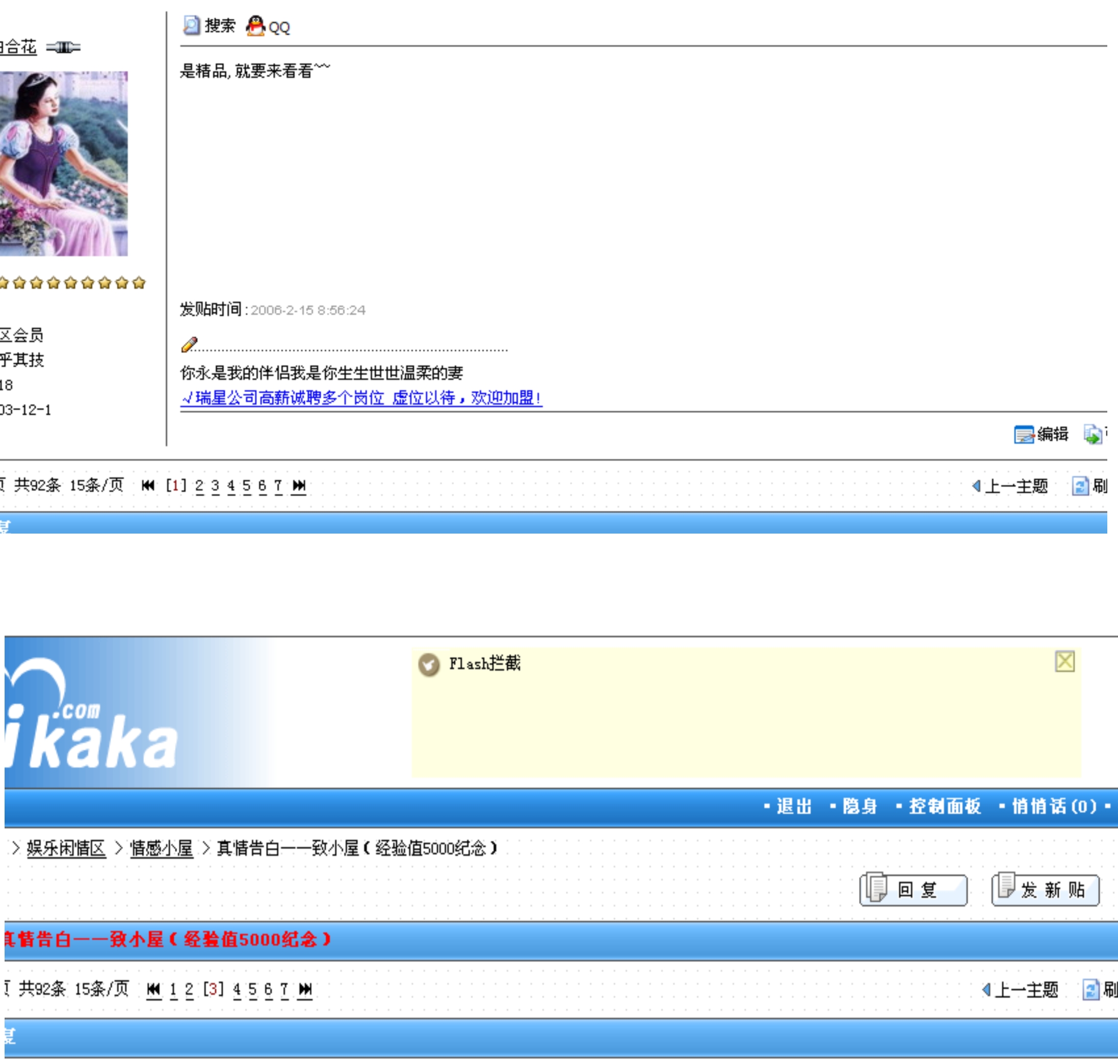 今天早上回了个贴子,明明显示该贴有7页的,可是我回复的贴子却在第一页出现!