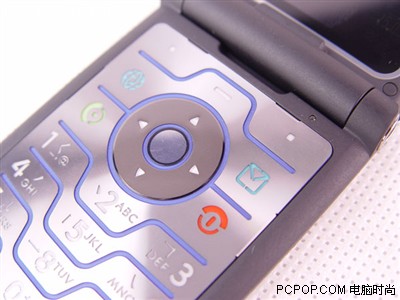 从外观和颜色看,V3i的改进还是十分明显的,石墨灰的颜色再加上全副武装的金属外壳,让此机显得没有V3那么张扬,而是内敛,深邃。蓝色的MOTOROLA的LOGO不但漂亮,其实它更是一个状态指示灯,设计的十分巧妙,幽幽的蓝光,更添贵族气质。