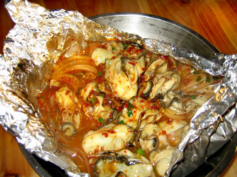 虽然是生蚝,但是熟的。