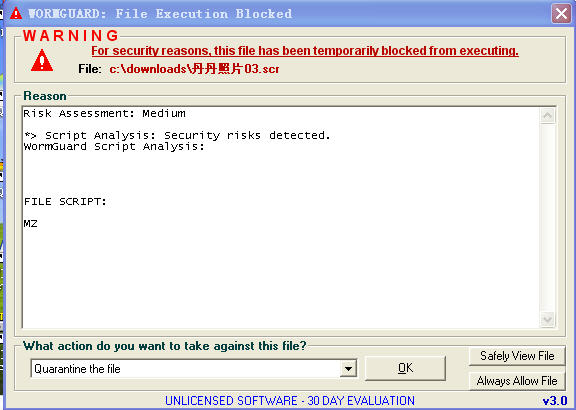 这个木马破坏多个杀软启动加载并禁止杀软监控。有意思的是:DiamondCS公司的WormGyard通过脚本分析可检测到这个木马(图)。
