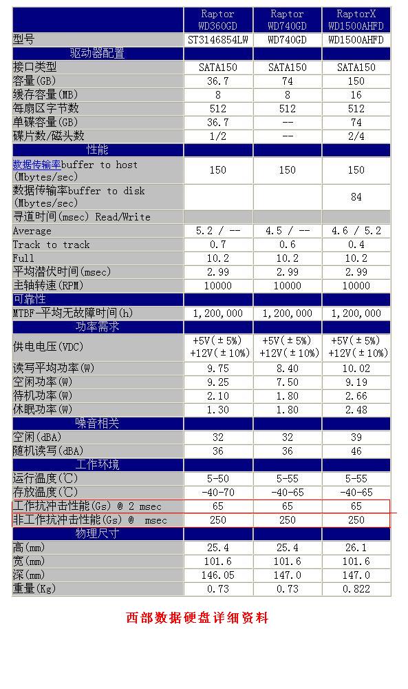 我在看这西部数据硬盘的时候看到下面一张表,但是不明白什么是 工作抗冲击性能,