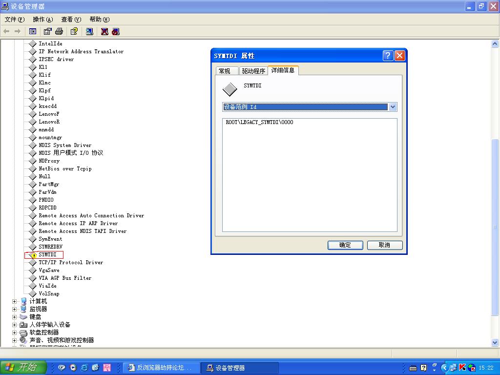 非即插即用程序中的SYMTDI问题已经解决,是NORTON残留.