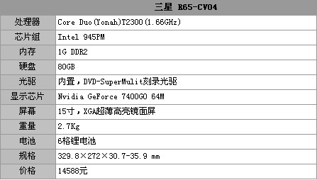 三星的R65同样也是一台基于Napa平台的机型,同时也是三星目前最强悍的机器了,无论是游戏,3D制作,影音欣赏都完全没有问题,是一款主要针对高端家用市场的笔记本机型。