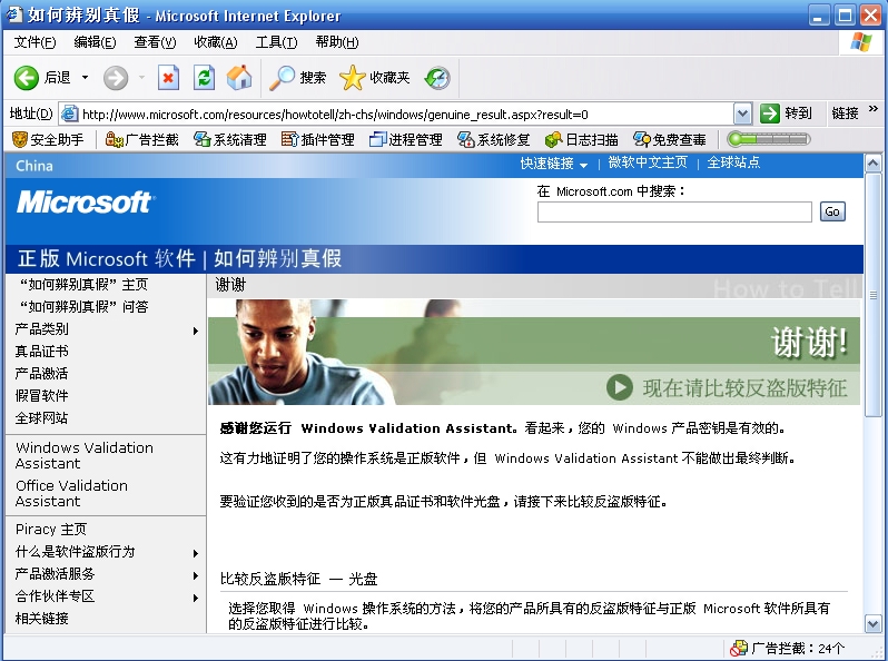 感谢您运行 Windows Validation Assistant。看起来,您的 Windows 产品密钥是有效的。