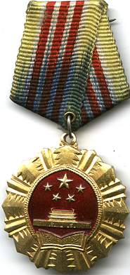 中华人民共和国授予中国人民解放军在中国人民革命战争时期有功人员的荣誉证章。包括:八一勋章;独立自由勋章;解放勋章。八一勋章的中心图案是红星和八一,突出反映中国共**于1927年8月1日独立领导革命武装的光辉史实;独立自由勋章的中心图案是红星和延安宝塔山,象征在中国共**的领导下,革命圣地延安是中国人民抗日民族战争的革命大本营;解放勋章的中心图案是红星和天安门,象征中国共**领导人民武装夺取全国胜利。 中国人民解放军在中国共**领导下,同全国人民一起,英勇地进行了长期革命战争,为中国人民革命事业和中华人民共和国的建立,立下了卓越功勋。1955年2月12日,中华人民共和国第一届全国人民代表大会常务委员会第7次会议根据国家宪法规定,作出《关于规定勋章奖章授予中国人民解放军在中国人民革命战争时期有功人员的决议》,颁发《中华人民共和国授予中国人民解放军在中国人民革命战争时期有功人员的勋章奖章条例》。条例规定,勋章分一、二、三级,奖章不分级。勋章由全国人民代表大会常务委员会决定,中华人民共和国主席授予;奖章由国务院批准,国防部长授予。授予勋章、奖章的条件,以参加革命时间的长短和当时职级的高低,以及是否一直坚持革命工作而无重大过失为依据。授予勋章、奖章的同时发给证书。
