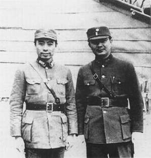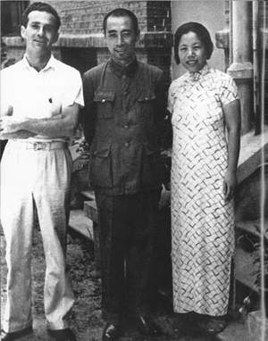 1939年7月,周恩来在延安坠马,致使右臂粉碎性骨折。这是8月赴苏联治疗前和刘少奇合影。