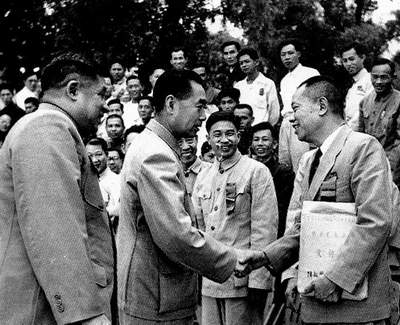 国民经济困难时,周恩来在河北武安县伯延公社向老农了解情况。