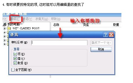 在注册表中按F3表示继续查找