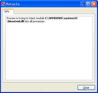 输入email后,KAV6 的提示:pcAudit对所有进程注入DLL。