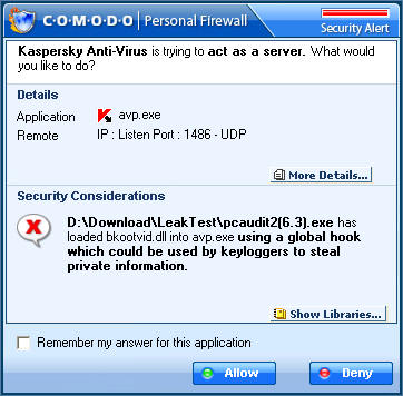 Comodo Personal Firewall 用KAV6和CPF2揭密pcAudit