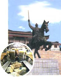 是西汉早期分封在徐州的第三代楚王刘戊的陵墓,位于其西侧300米远的汉兵马俑则象征着卫戍楚王陵的部队。这座楚王陵凿山为葬,结构奇特,工程浩大,凿石量高达5100立方米。墓中出土了各类珍贵文物近两千余件(套),有金银铜铁玉石漆等质地。该墓的发掘被评为95年中国十大考古发现之手,其雄浑博大的汉代特色令后人赞叹不已。
