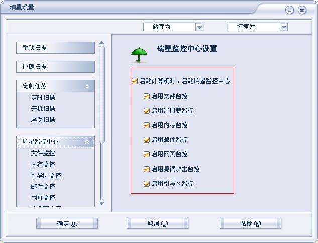 我刚刚安装了瑞星2006个人版杀毒软件,安装好重启动计算机后,发现电脑桌面右下角只有防火墙图标.而没有自动开启其安装监控的小雨伞图标.因此,每次须手动启动.