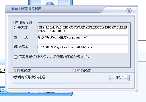 我说的详细些,每次重新启动几分钟后瑞星就提示要修改注册表