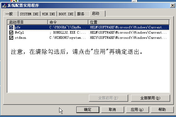 开始,运行MSCONFIG,确定,点“启动”在启动项里清除勾选你不需要跟着系统运行的软件。最后点“应用”“确定”