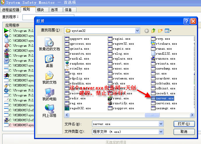 添加上述规则时,意外发现同一路径下还有一个server.exe文件(图3),创建日期与上面那个DLL相同。再添加一条规则,禁止server.exe加载运行。