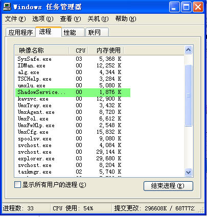 虽然开启power shadow单一模式时,进程只有两个,而且共占内存不到3M.