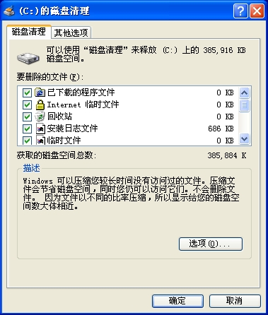 通过释放磁盘空间,可以提高计算机的性能。磁盘清理工具是 Microsoft Windows 附带的一个实用工具,可以帮助您释放硬盘上的空间。该实用工具先标识出可以安全删除的文件,然后允许您选择希望删除部分还是全部标识出的文件。