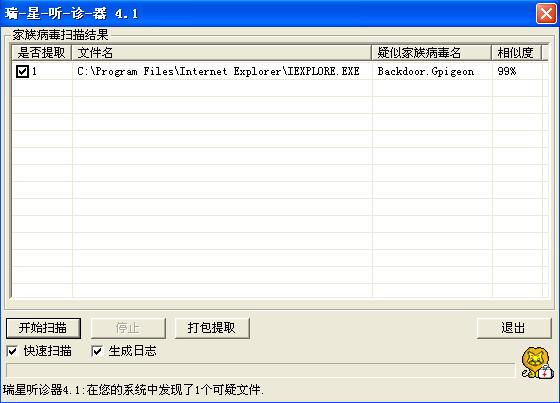 还有一个问题就是我用瑞星听诊器扫描时,提示有个像百分之九十九的程序,但是就是提取不了,每次提取都失败。