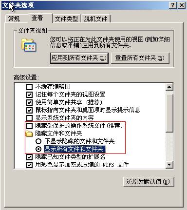 1、由于灰鸽子的文件本身具有隐藏属性,因此要设置Windows显示所有文件。打开“我的电脑”,选择菜单“工具”—》“文件夹选项”,点击“查看”,取消“隐藏受保护的操作系统文件”前的对勾,并在“隐藏文件和文件夹”项中选择“显示所有文件和文件夹”,然后点击“确定”。(图1)