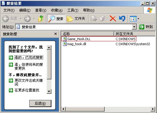 3、经过搜索,我们在Windows目录(不包含子目录)下发现了一个名为Game_Hook.dll的文件。(图3)