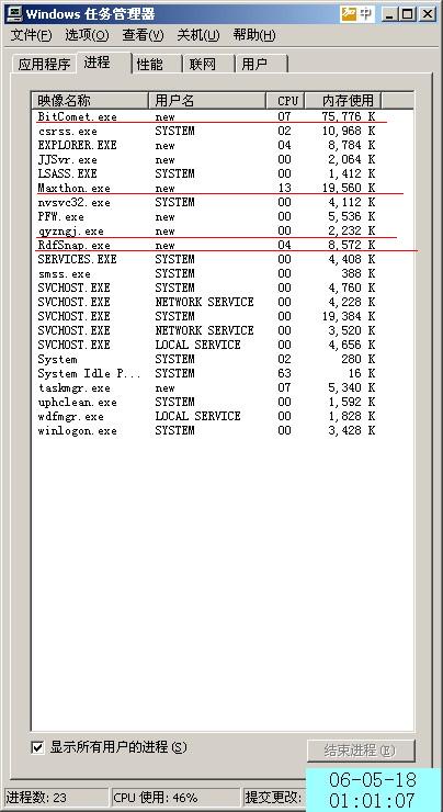 除去BT.MAXYHON,抓图还有一个显示时间的小软件,我才19个进程,跟你的比是不是太少阿,.....