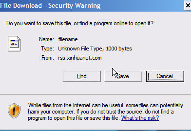 系统是XPsp2, 装了IE7.0 beta2, 开始正常,今天忽然不能使用feeds功能,点击feeds链接,就会出现一个RSS文件下载框,并说明windows不能打开rss格式的文件。如图: