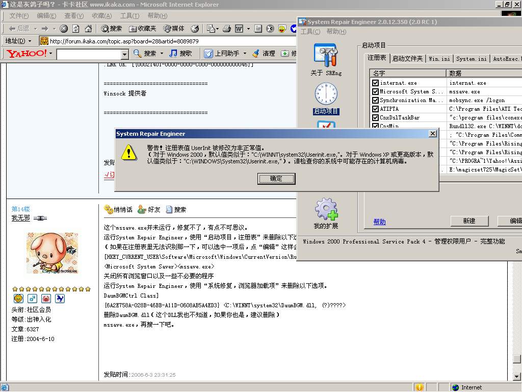 运行System Repair Engineer,使用“启动项目,注册表”来删除以下选项。