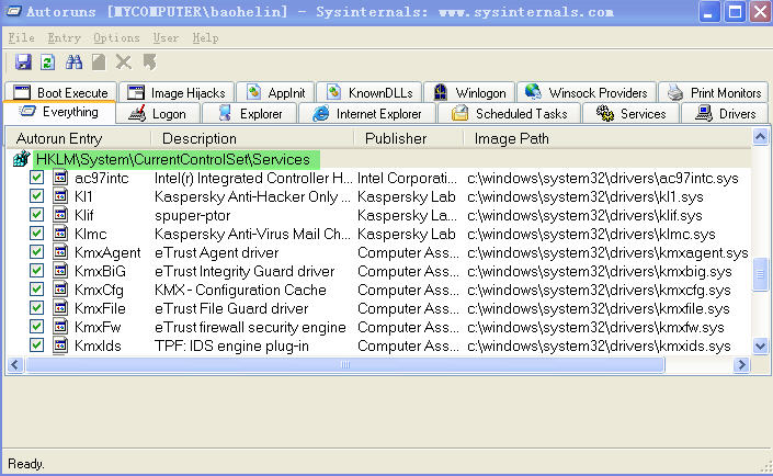 vook.sys的驱动项,上次见过一次,Autoruns日志上的确是在版主所说的Services项目中。