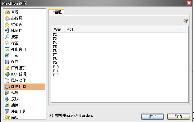 原来自己设置的可以用F2~F12打开网址的,可是重新装了一下Maxthon,发现这个不能用了?这是怎么会事?要怎样解决呢?