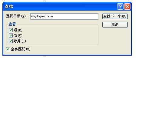 再在注册表里按下“F3”键后在弹出的如下窗口中填入程序的文件名击确定见下图所示