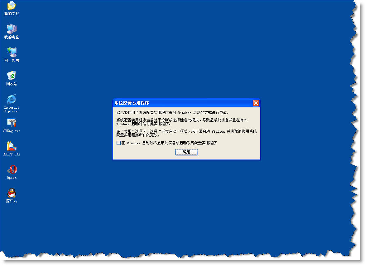 “我的电脑\HKEY_LOCAL_MACHINE\SOFTWARE\Microsoft\Shared Tools\MSConfig”的右面添加了一个字符串值键值名是:“MSConfig”键值是“c:\Windows\PCHealth\HelpCtr\Binaries\msconfig.exe /auto”如果要想取消它在开机不再出现这个窗口,且方法有很多,比如直接只删除它添加进注册表的这个键值即可、在出现这个窗口时选择打上“启动时不显示此信息或启动系统配置实用程序”的钩选。