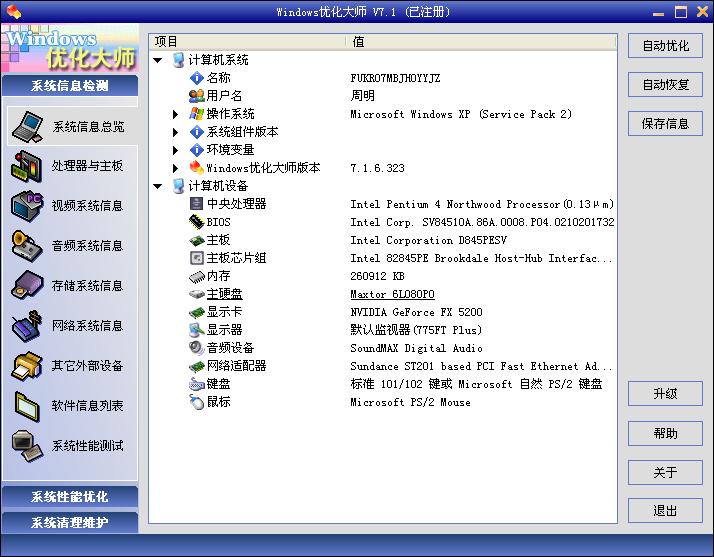 下面是我用Windows优化大师截的配置图,能不能装WindowsVista系统请高手给个意见。