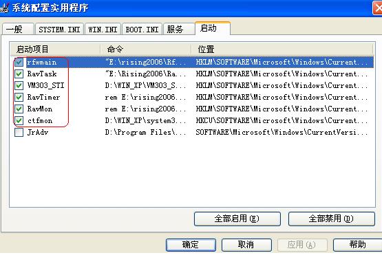 点击其中的“启动”标签,将不需要自动启动的程序前面的“√”去掉就可以了。一般只需留下ctfmon(输入法图标)、systemtray(音量图标)以及杀毒程序。笔者的电脑只留下“ctfmon”这一项