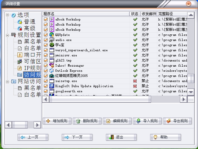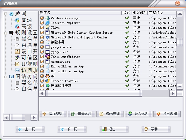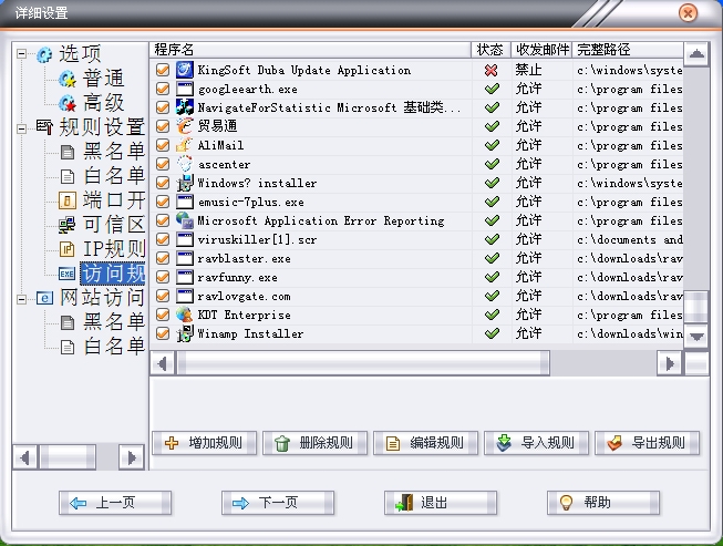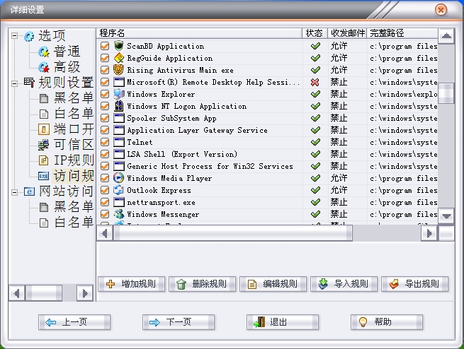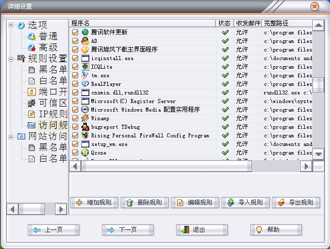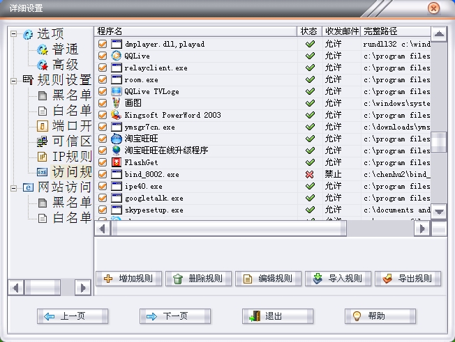 以上是我的防火墙全部设置,请各位大侠指教,谢谢了。