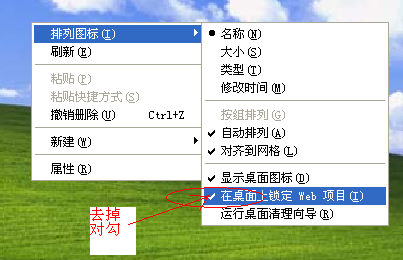 你锁定了桌面WEB 取消 单击鼠标右键 选择排列图标 把锁定web图标的勾去掉 就可以了
