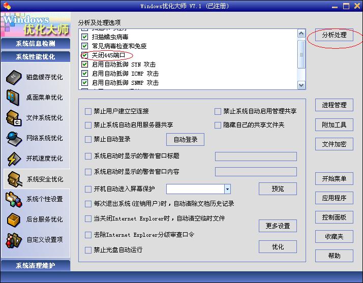 不过你最好用Windows优化大师关闭445端口