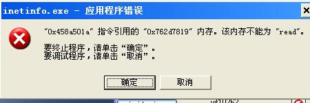 “0x458a501a ”指令引用的“ 0x762d7819 ” 内存,该内存不能为 “read”