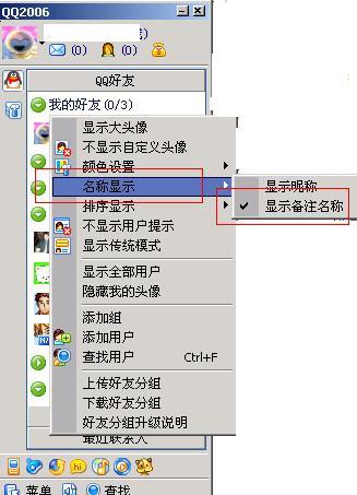 我今天不小心把我的QQ2006设置成显示好友昵称了(原来都是显示我自己设置的备注名称),结果所有好友都变成了原来的昵称,我想设置回去,可是不论点哪里都找不到我刚才点的菜单项了,找了半天也没有找到这个选项!难道这个版本有漏洞吗?