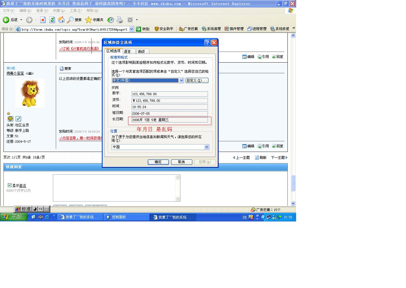 我晕了~~我的系统时间里的 年月日 变成乱码了 请问能改回来吗?