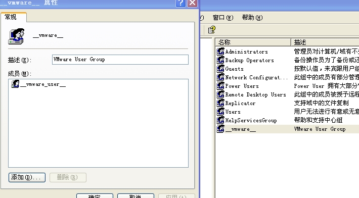前一段时间下载安装了虚拟机,今天在查看系统时,在C:\Documents and Settings下发现了一个用户名为‘__vmware_user__’文件夹,继续查找又在计算机管理的用户和组里都有它的踪影[如下图]。当时搞得我一头雾水,最近电脑并没有异常现象发生,不可能发生入侵,后来仔细查看用户名确认是虚拟机创建的。