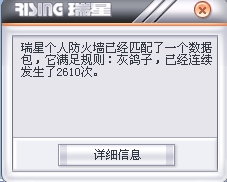 昨天下午到晚上我的防火墙总是提示:瑞星个人防火墙已经配了一个数据包,它满足规则:灰鸽子,已经连续发生了2760次.次数还在不断的增加!!