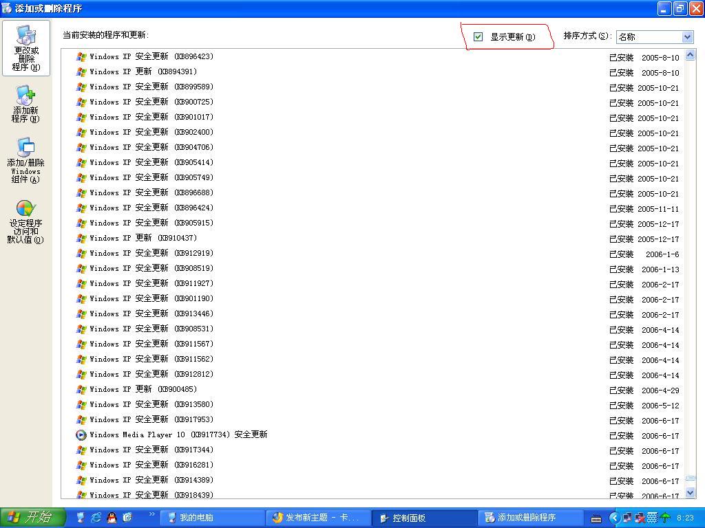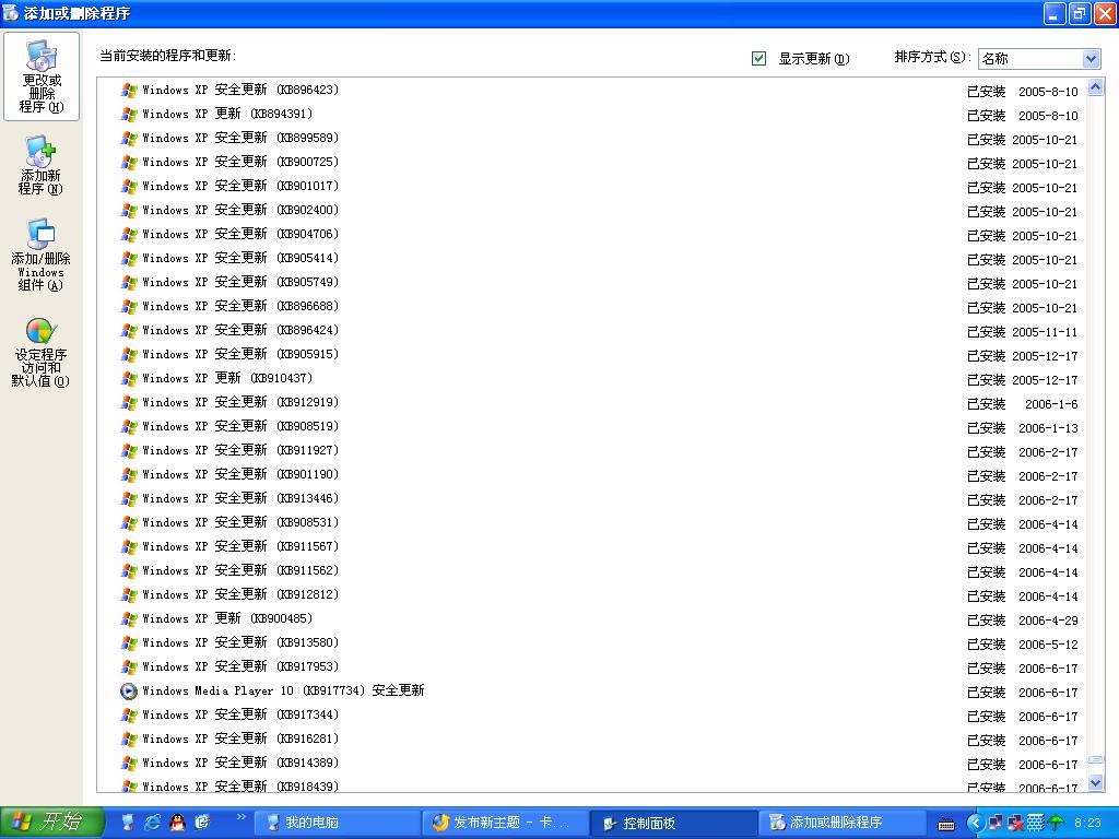 现在那里XP更新程序一大堆,打开添加删除程序变的很慢!