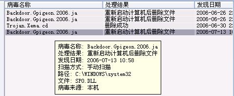 瑞星卡卡安全论坛技术交流区反病毒/反流氓软件论坛 【求助】Backdoor.Gpigeon.2006.ja杀不了