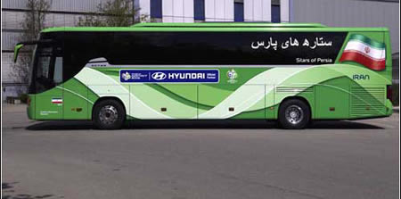 伊朗队大巴,口号是stars of persia(波斯群星)