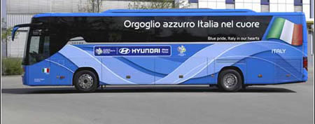乌克兰队大巴,口号是with our support,ukraine cannot fail to win!(有我们的支持,乌克兰怎能不赢!)