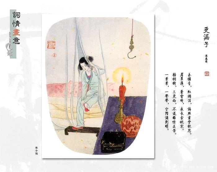 春夜思远,无边惆怅,全由花外漏声引出,切入自然,传写有序。塞雁、城乌因漏声迢递而惊起,均为拟想之景,合理入情;而屏上的金鹧鸪依然如故,于一动一静间寓有情与无情。下片由外至九全为闺房陈设,“惆怅”与“梦长”互为因果。“谢家”则微露主人身份,愈见其思之苦之痴。王国维《人间词话》从此词中拈出“画屏金鹧鸪”句来概括飞卿词的特色,亦可见其向为人称。