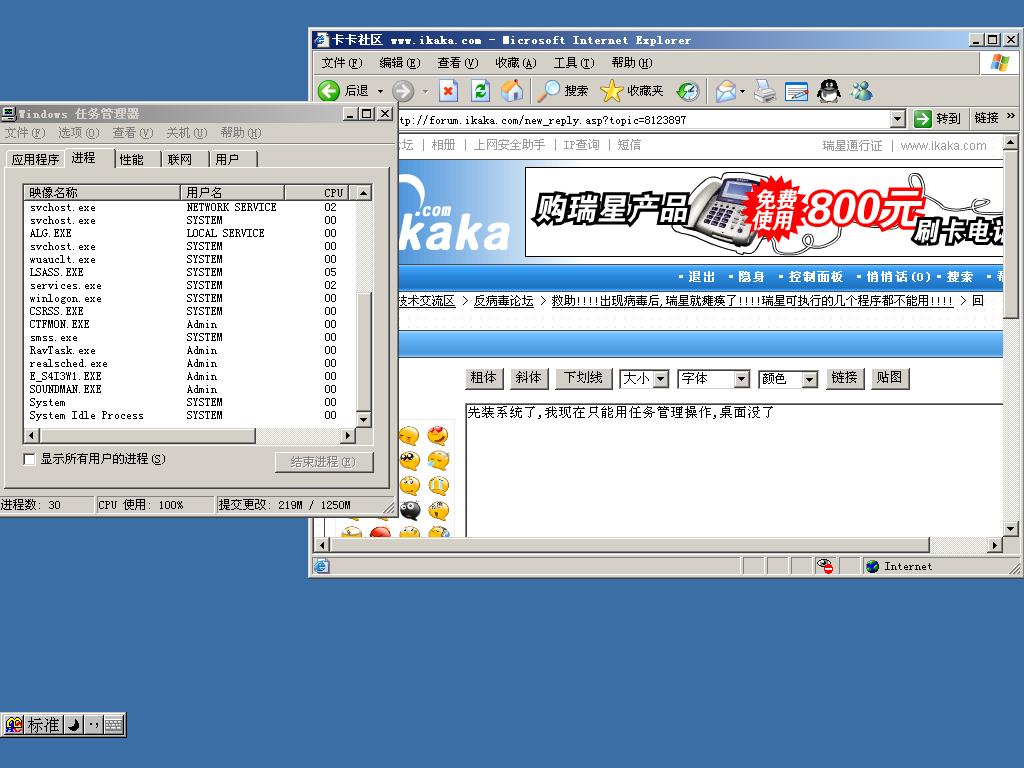 瑞星卡卡安全论坛技术交流区反病毒/反流氓软件论坛 救助!!!!出现病毒后,瑞星就瘫痪了!!!!瑞星可执行的几个程序都不能用!!!!
