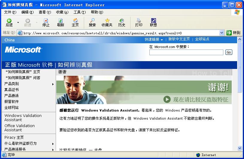 验证XP是否为正版的网页链接,谁给一个?