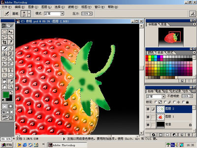 十九、对照完成图片,用涂抹工具顺叶片纹理耐心涂抹,直到得出如下效果。(我就是这么画的,有哪位大侠有更好办法请告诉我,别说用图片截图的哦……)